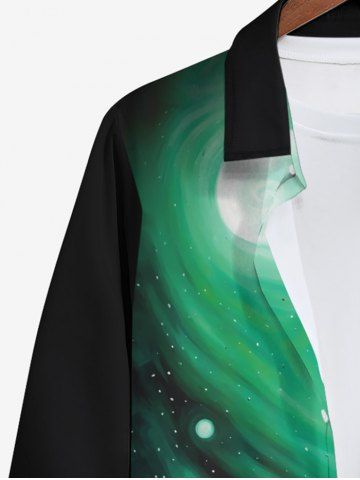 Plus Size Rose Flower Leaf Glitter Painting Galaxy Moon Print Halloween Button Shirt For Men - Black - 8xl