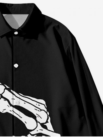 Plus Size Skeleton Hand Print Halloween Button Shirt For Men - Black - M