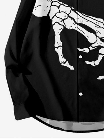 Plus Size Skeleton Hand Print Halloween Button Shirt For Men - Black - Xl