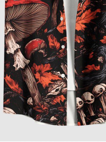 Men > Plus Size Skeleton Mushroom Maple Leaf Print Halloween Button Pocket Shirt For Men