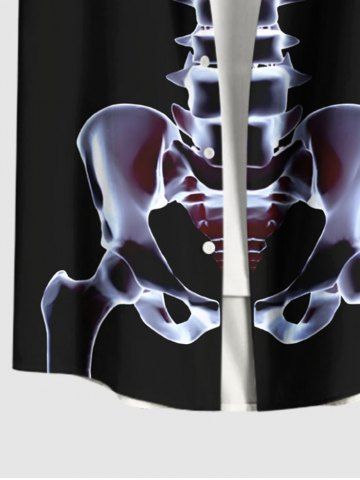 Plus Size Skeleton Print Buttons Pocket Shirt For Men - Black - 4xl