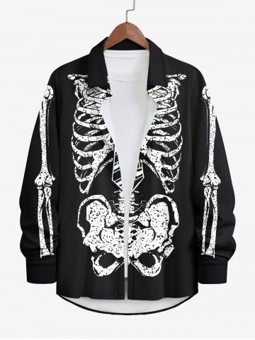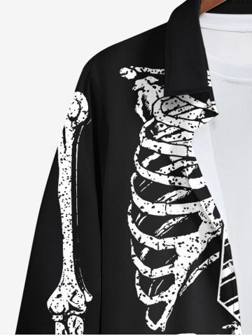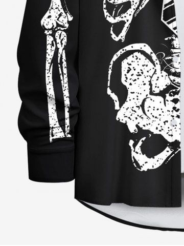 Plus Size Skeleton Tie Print Full Buttons Long Sleeves Shirt For Men - Black - 8xl