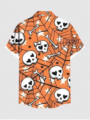 Plus Size Skull Bone Spider Web Star Print Halloween Button Pocket Shirt For Men - Orange - 5xl