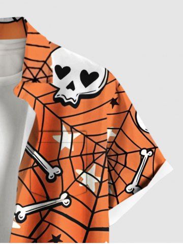 Plus Size Skull Bone Spider Web Star Print Halloween Button Pocket Shirt For Men - Orange - 6xl