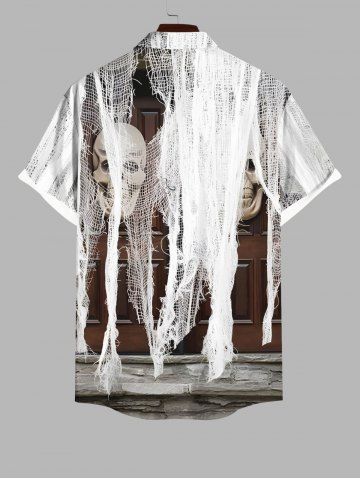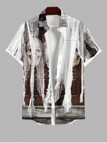 Plus Size Skull Distressed Gauze Print Halloween Button Pocket Shirt For Men - Multi-a - 4xl