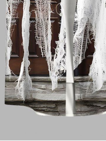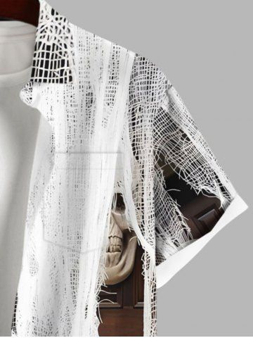 Men > Plus Size Skull Distressed Gauze Print Halloween Button Pocket Shirt For Men
