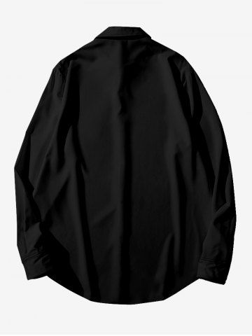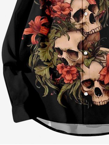 Plus Size Skull Flower Leaf Branch Print Halloween Button Shirt For Men - Black - 2xl