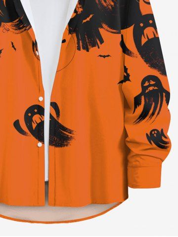 Plus Size Skull Ghost Bat Two Tone Print Halloween Button Shirt For Men - Dark Orange - M