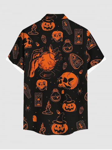 Plus Size Skull Pumpkin Tombstone Print Halloween Button Pocket Shirt For Men - Black - M