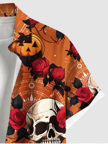 Men > Plus Size Skull Rose Flower Leaf Pumpkin Print Halloween Button Pocket Shirt For Men