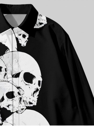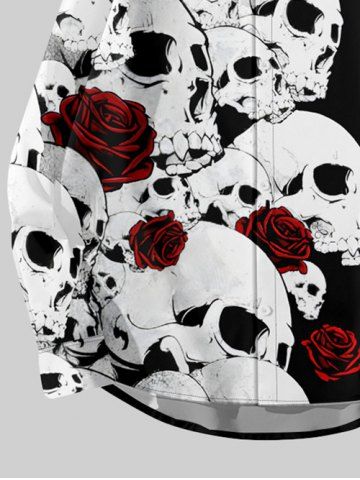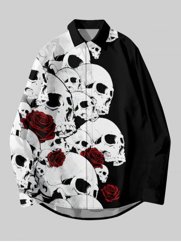 Plus Size Skull Rose Flower Print Halloween Button Shirt For Men - Black - 8xl