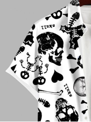 Plus Size Skull Skeleton Fish Heart Bone Print Halloween Button Pocket Shirt For Men - Multi-a - 4xl