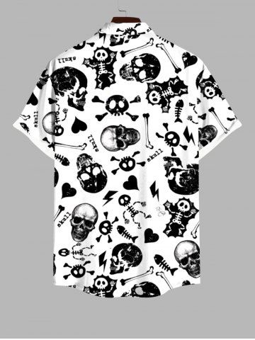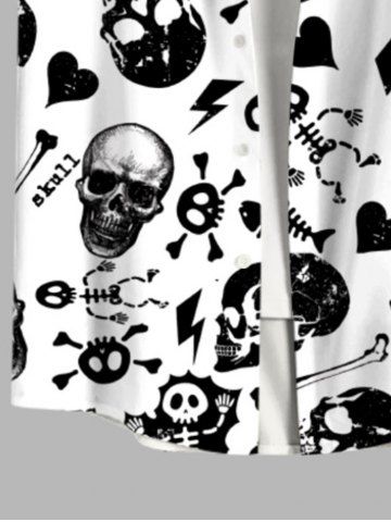 Men > Plus Size Skull Skeleton Fish Heart Bone Print Halloween Button Pocket Shirt For Men
