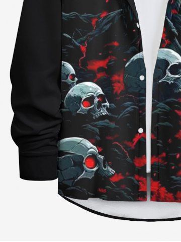 Plus Size Skull Tree Branch Hell Print Halloween Button Long Sleeves Shirt For Men - Black - M