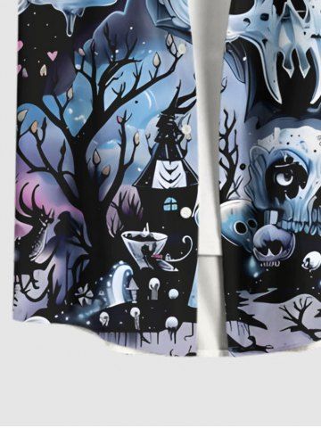 Plus Size Skull Tree Castle Moon Cloud Galaxy Print Halloween Button Pocket Shirt For Men - Multi-a - 3xl