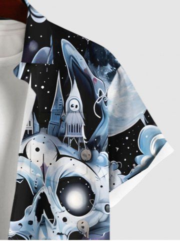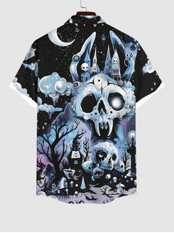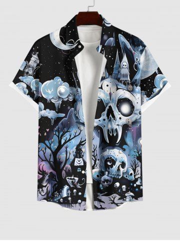 Men > Plus Size Skull Tree Castle Moon Cloud Galaxy Print Halloween Button Pocket Shirt For Men