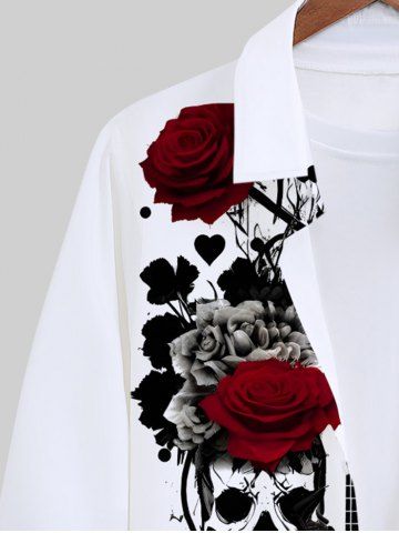 Plus Size Skulls Flower Leaf Heart Guitar Ink Painting Print Halloween Button Shirt For Men - White - Xl