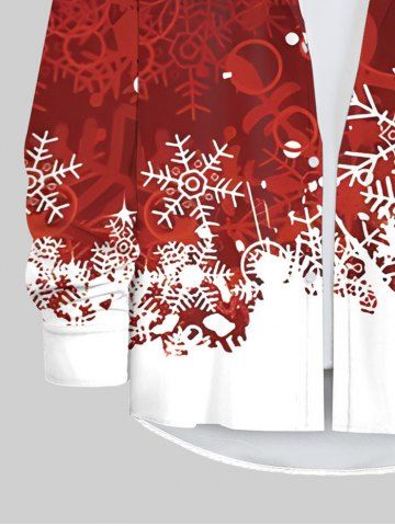 Plus Size Snowflake Bubble Ombre Contrast Colorblock Print Christmas Button Long Sleeves Shirt For Men - Red - M