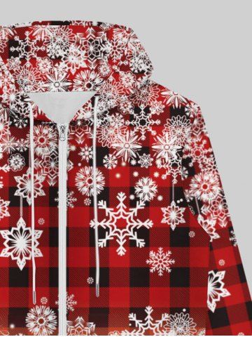 Plus Size Snowflake Geometric Plaid Print Christmas Zipper Pocket Drawstring Long Sleeves Hoodie For Men - Red - 4xl