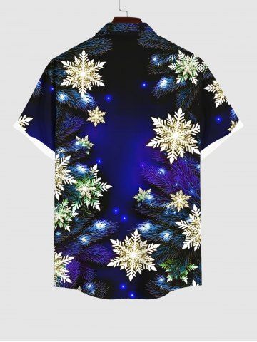 Plus Size Snowflake Ombre Galaxy Print Christmas Button Pocket Shirt For Men - Black - M