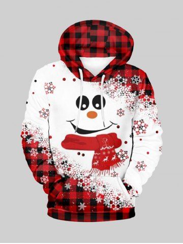 Men's Clothing > Plus Size Snowflake Snowman Plaid Print Christmas Pocket Drawstring Pullover Long Sleeves Hoodie For Men