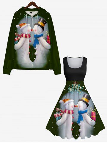 Plus Size Snowman Lovers Print Christmas Zipper Pocket Drawstring Long Sleeves Hoodie For Men - Black - 2xl