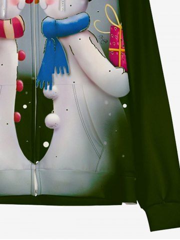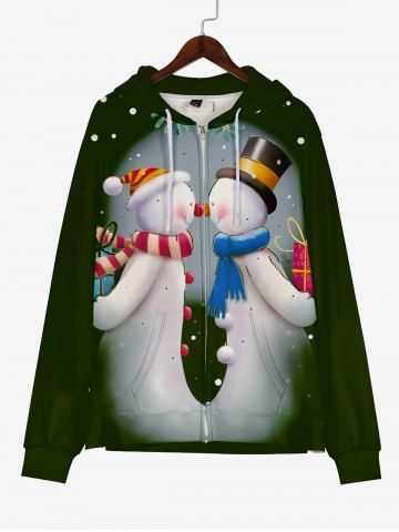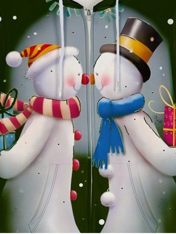 Plus Size Snowman Lovers Print Christmas Zipper Pocket Drawstring Long Sleeves Hoodie For Men