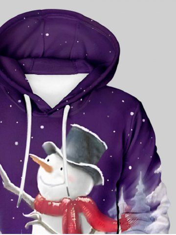 Plus Size Snowman Tree Branch Bird Galaxy Print Christmas Pocket Drawstring Pullover Hoodie For Men - Purple - 8xl