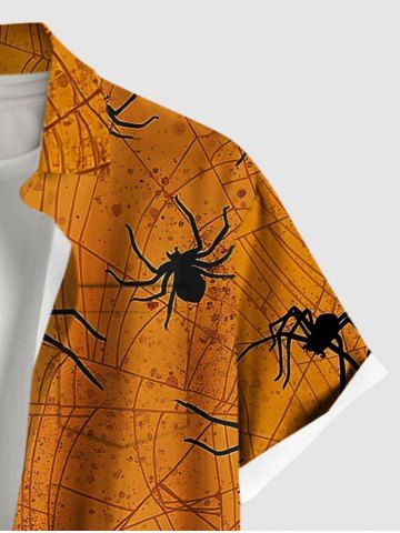 Plus Size Spider Web Insect Print Halloween Button Pocket Shirt For Men - Orange - Xl