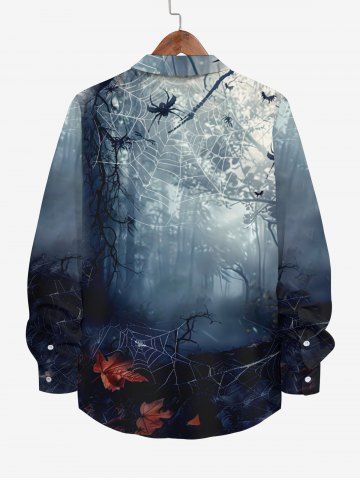 Plus Size Spider Web Maple Leaf Ombre Forest Print Halloween Button Shirt For Men - Multi-a - 4xl