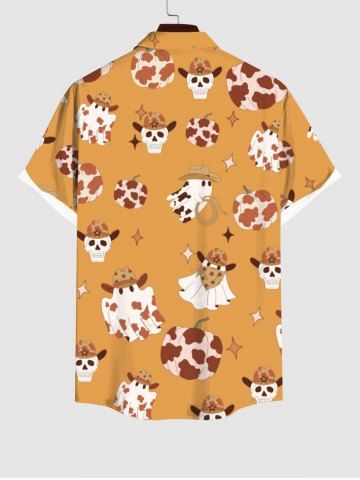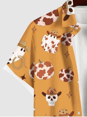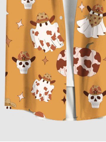 Men > Plus Size Spotted Pumpkin Skull Hat Ghost Stars Print Halloween Button Pocket Shirt For Men