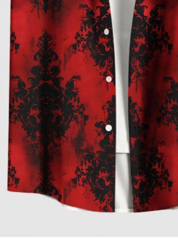 Plus Size Tie Dye Floral Pattern Print Buttons Pocket Shirt For Men - Red - L