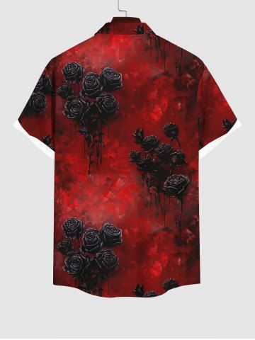 Plus Size Tie Dye Ombre Rose Flower Print Halloween Button Pocket Shirt For Men - Red - M