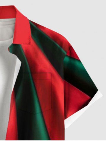 Plus Size Two Tone Christmas Colorblock Print Button Pocket Shirt For Men - Red - S