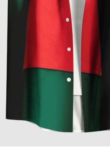 Plus Size Two Tone Christmas Colorblock Print Button Pocket Shirt For Men - Red - L