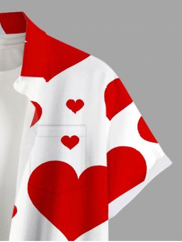 Plus Size Valentine's Day Heart Print Buttons Pocket Shirt For Men - White - 4xl