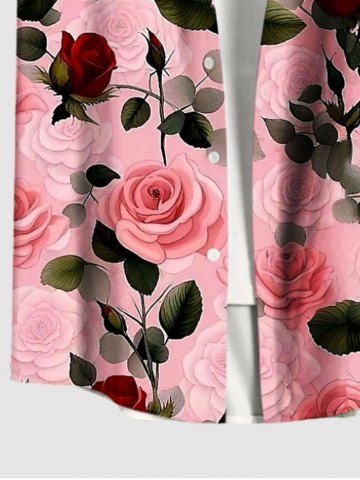 Plus Size Valentine's Day Rose Flower Leaf Print Buttons Pocket Shirt For Men - Light Pink - 4xl