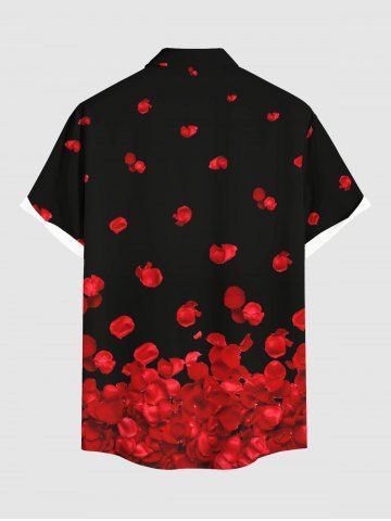 Plus Size Valentine's Day Rose Flower Petal Print Buttons Pocket Shirt For Men - Black - S