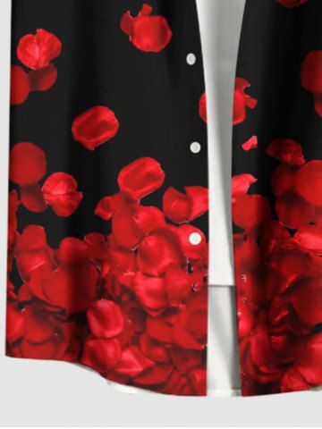 Plus Size Valentine's Day Rose Flower Petal Print Buttons Pocket Shirt For Men - Black - 6xl