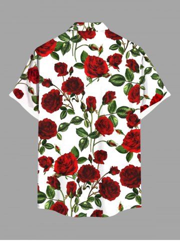 Plus Size Valentine's Day Rose Flowers Leaf Print Buttons Pocket Shirt For Men - Red - 2xl