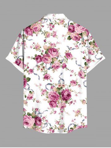 Plus Size Valentine's Day Rose Flowers Leaf Print Buttons Pocket Shirt For Men - White - L