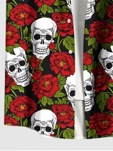 Men > Plus Size Valentine's Day Skull Rose Flower Print Buttons Pocket Shirt For Men