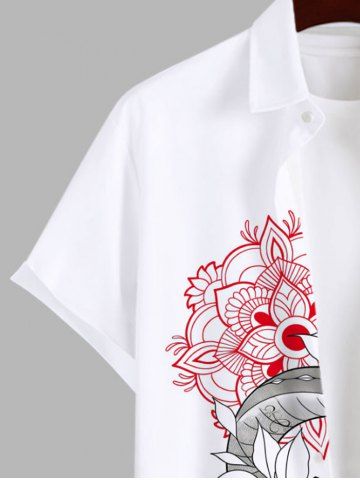 Plus Size Vintage Floral Line Snake Print Halloween Button Pocket Shirt For Men - White - M