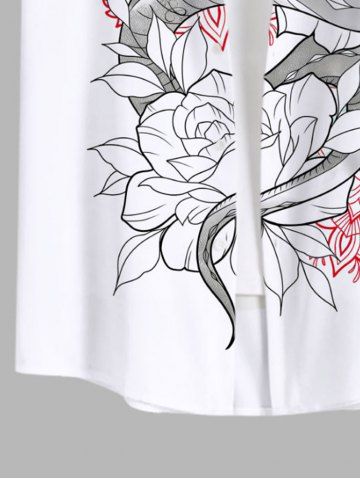 Plus Size Vintage Floral Line Snake Print Halloween Button Pocket Shirt For Men - White - Xl