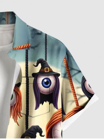 Men > Plus Size Wizard Eye Tree Pumpkin Moon Print Halloween Button Pocket Shirt For Men