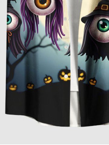 Men > Plus Size Wizard Eye Tree Pumpkin Moon Print Halloween Button Pocket Shirt For Men