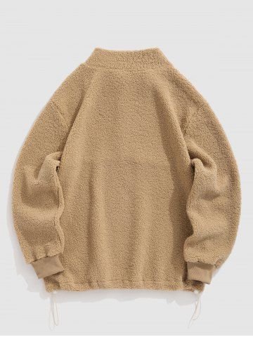 Hoodies & Sweatshirts > Faux Sherpa Fluffy Spliced Plaid Half Zip Stand Collar Toggle Drawstring Teddy Sweatshirt