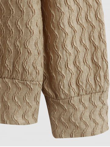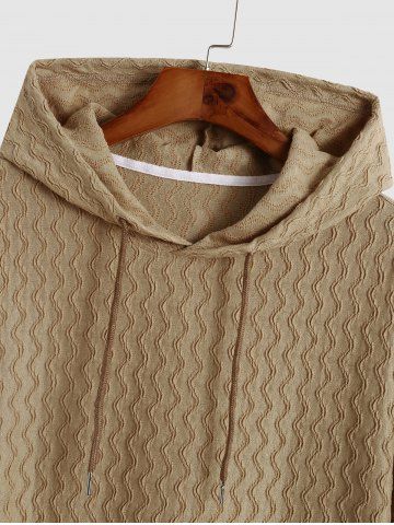 Kangaroo Pocket Decor Wave Jacquard Textured Hoodie - Coffee - S