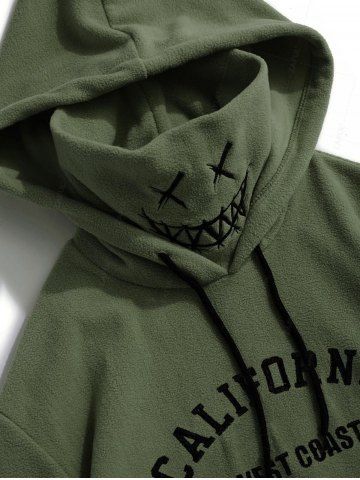 Hoodies & Sweatshirts > Letter Graphic Embroidered Fleece Mask Hoodie