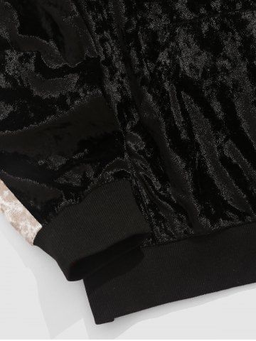 Men's C'EST LA VIE PARIS Letter Embroidered Fuzzy Fleece Colorblock Sleeves Kangaroo Pocket Design Pullover Hoodie - Black - S